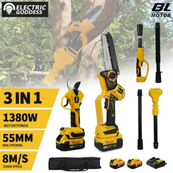 *מסור חשמלי טלסקופי 3 ב-1 ללא מברשות – לגיזום ענפים גבוהים בקלות!* ⚡🌳