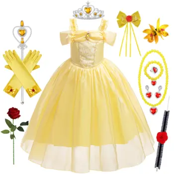 *שמלת נסיכה מהאגדות – תחפושת בל והחיה לילדות* 👑✨
