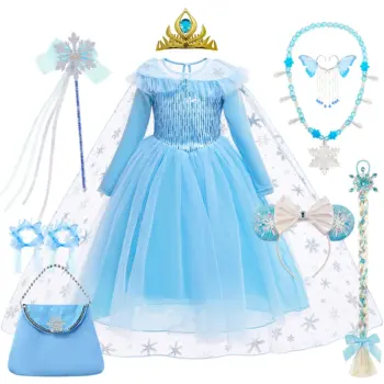 *שמלת נסיכות קסומה לילדות – דגם מלכת השלג עם נצנצים* 👑❄️